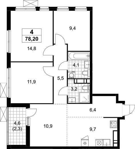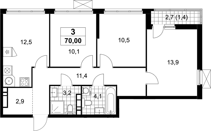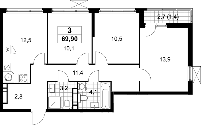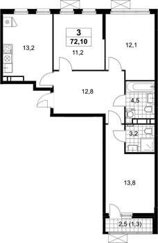 Площадь от 69.9 м2