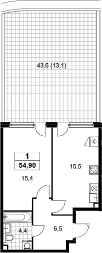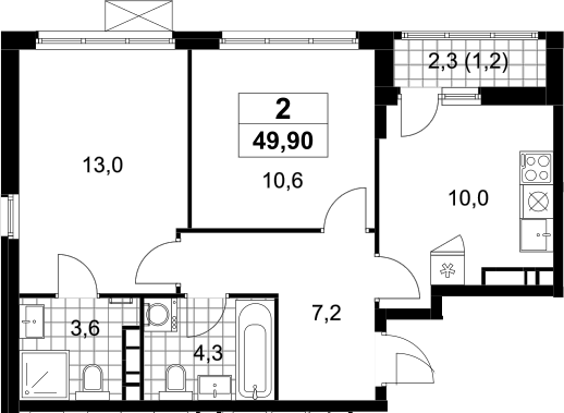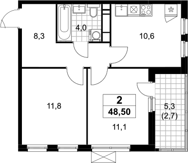 Площадь от 48.5 м2