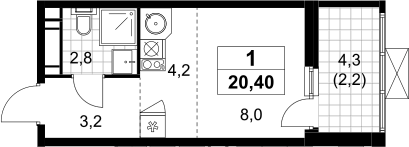 Площадь от 20.4 м2