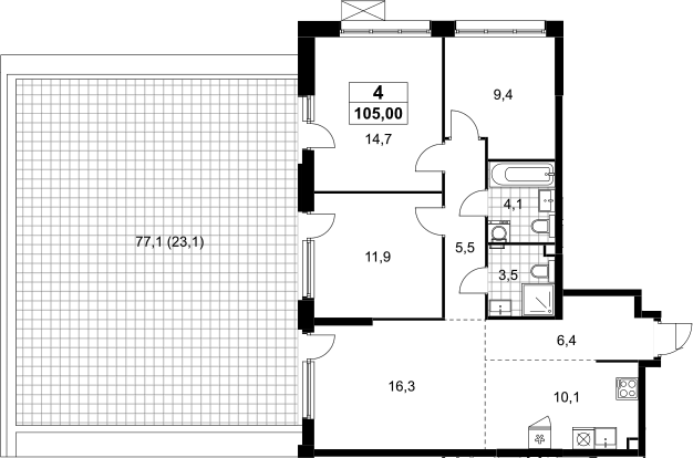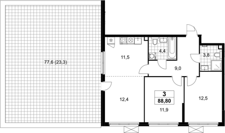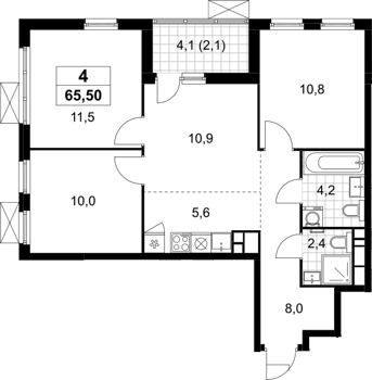 Площадь от 65.5 м2