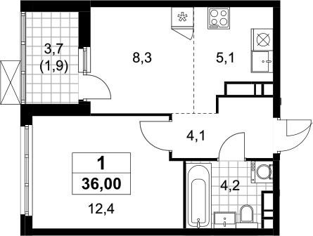 Площадь от 36 м2