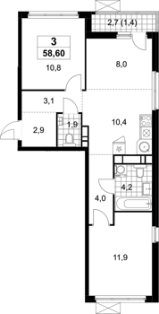 Площадь от 58.6 м2